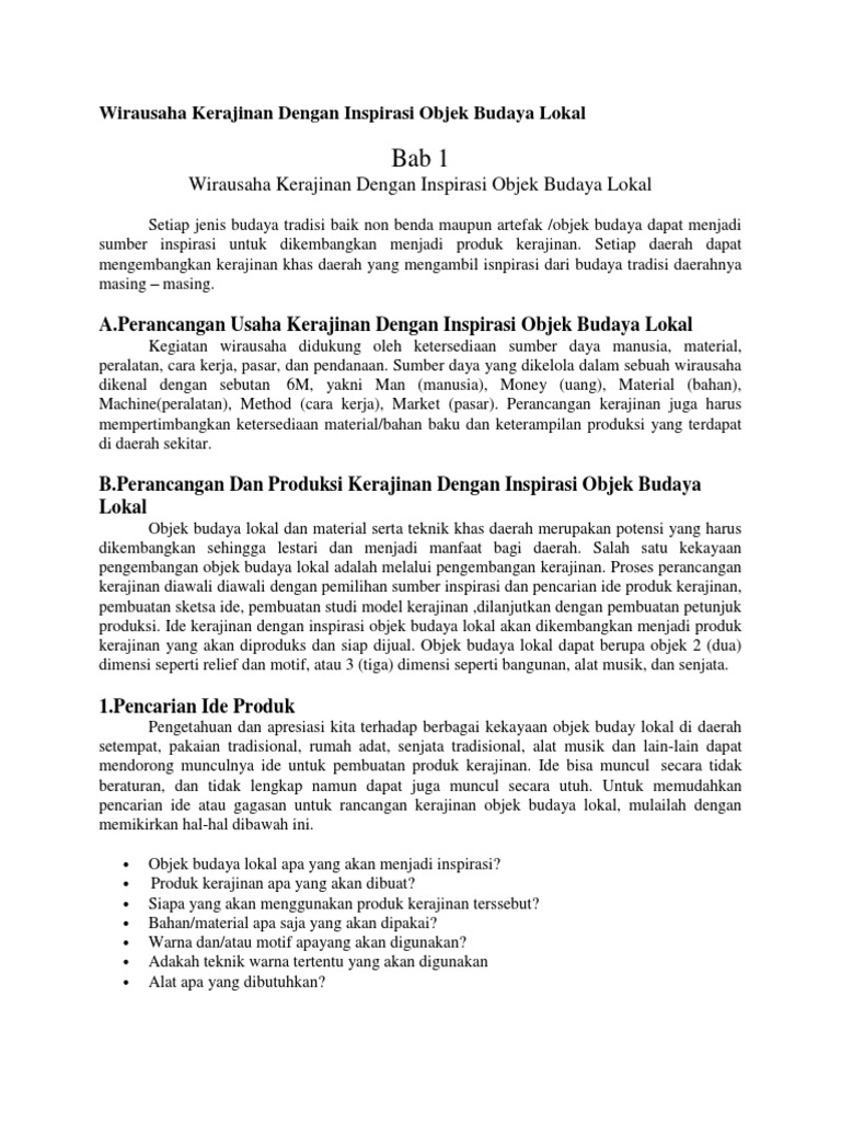 Wirausaha Kerajinan Dengan Inspirasi Objek Budaya Lokal via scribd.com